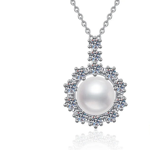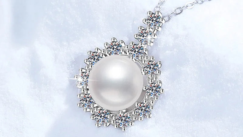 Material : 100% 925 Sterling Silver + D Color Moissanite +Natural Pearl