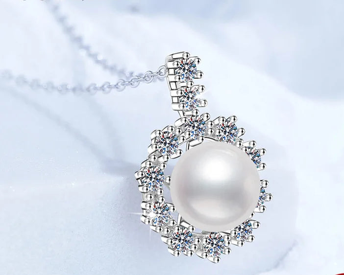 Material: 925 Sterling Silver + Moissanite+Natural Pearl+BOX
